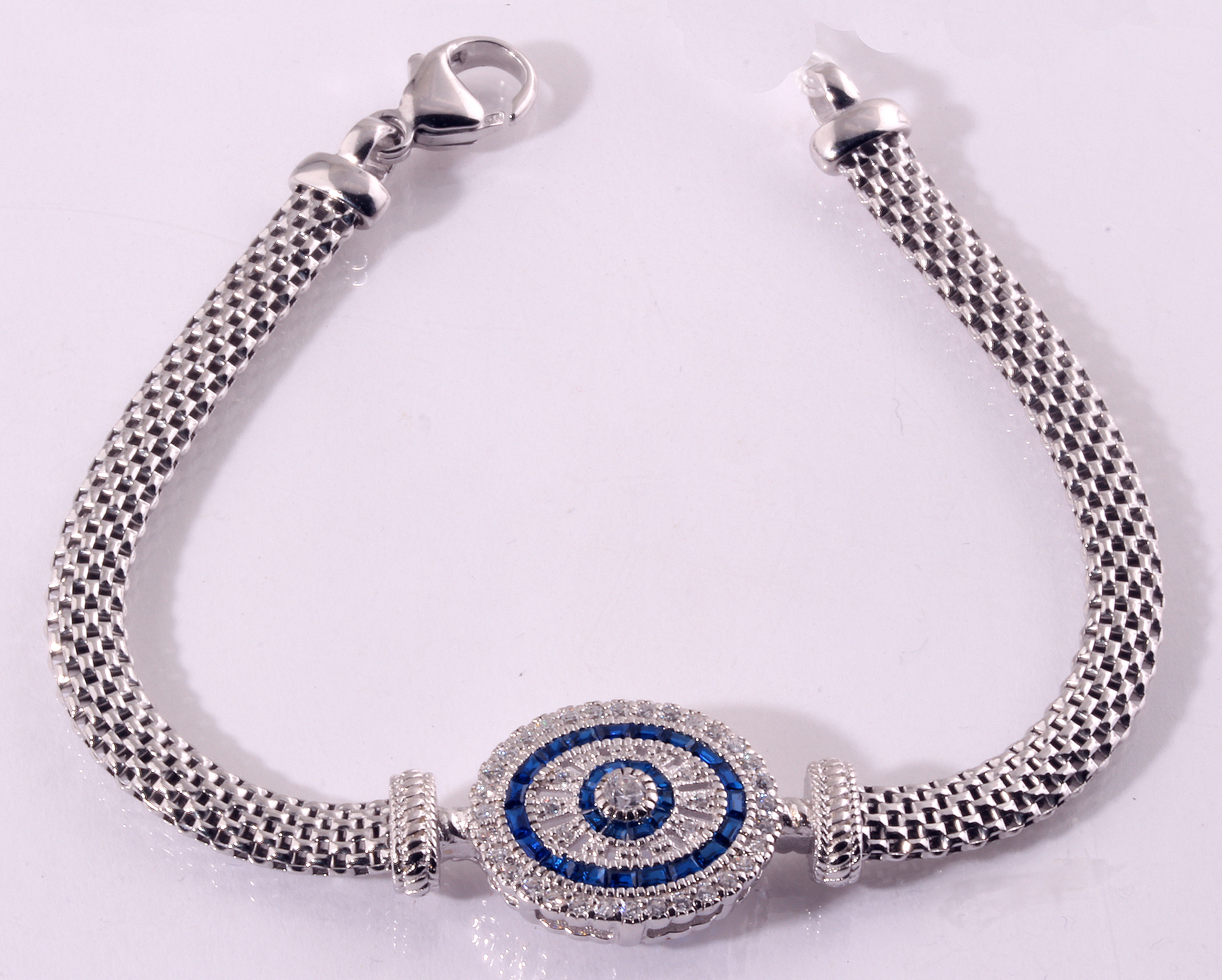 Rae & Jade Sterling Silver Blue Spinel and Cubic Zirconium Estate Look Bracelet 9970