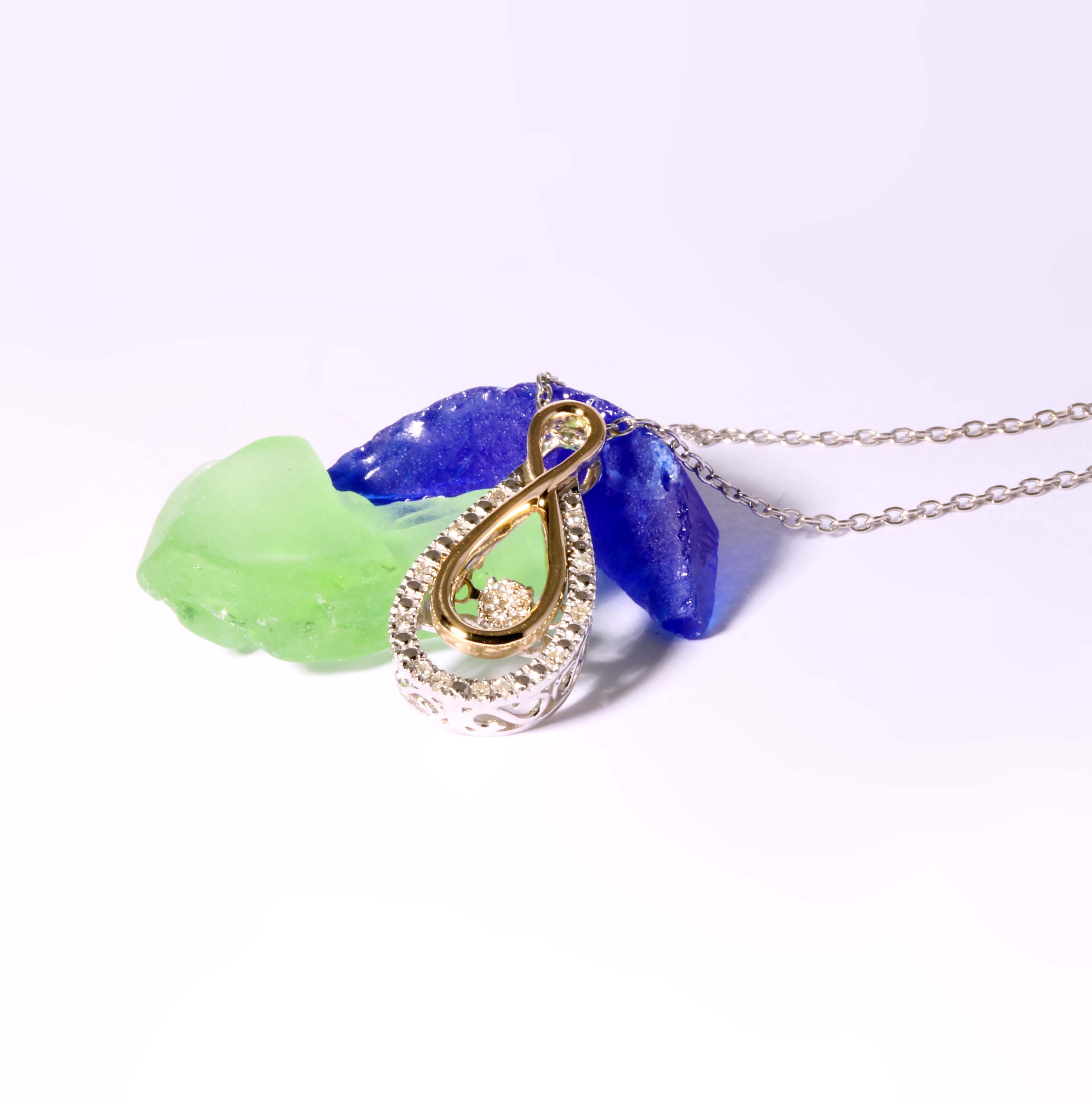 Rhythm of Love Diamond 0.09ctw Drop Pendant in 10K Yellow Gold and Sterling Silver -Stock# 7497
