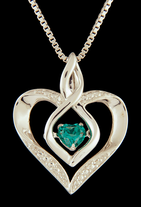 Rhythm Of Love Double Heart Diamond and Lab Created Emerald Necklace in Sterling Silver – Stock# 9383