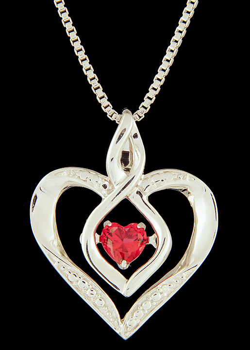 Rhythm Of Love Double Heart Diamond and Lab Created Pink Tourmaline Necklace in Sterling Silver – Stock# 9393