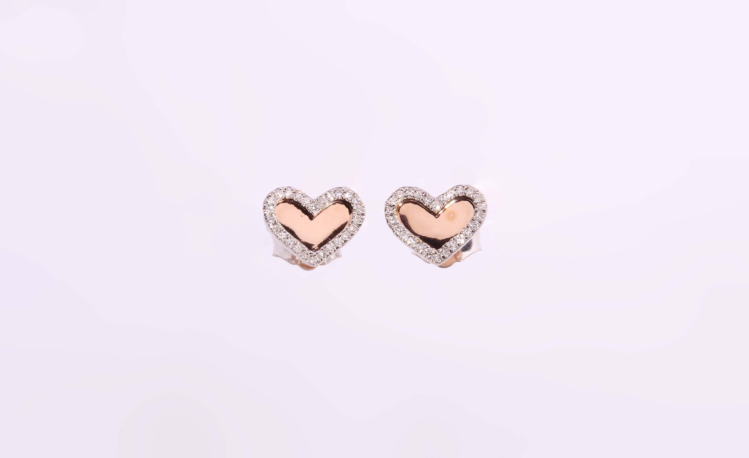 Rose Gold Diamond Earrings with .07 Carats of Diamonds. Flat Pink Gold Back Panels #150-00125