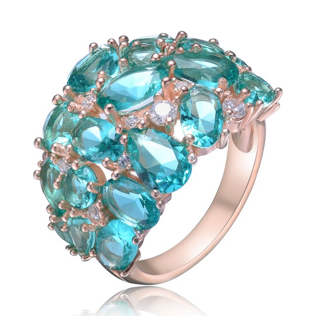 Rose-Plate Sterling Silver 18mm Wide Multi-colored Synthetic Aqua & White CZ Top Cluster Ring – #621-00032