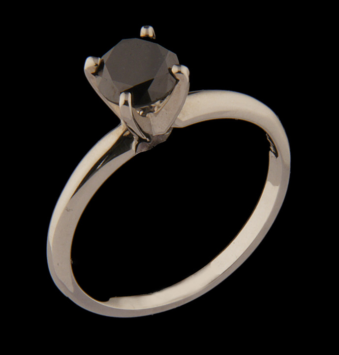 Round Black Diamond Solitaire Engagement Ring R-75-BD-W 0.75 ctw 14K White Gold – Stock# 6110