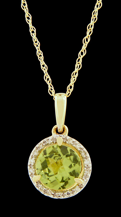 Round Checkerboard Peridot and Diamond Halo Pendant Stock# 8908