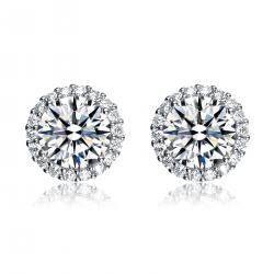 Round CZ Halo Style Sterling Silver Earrings #12062