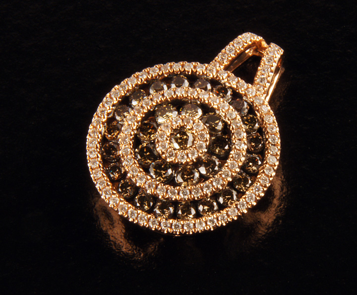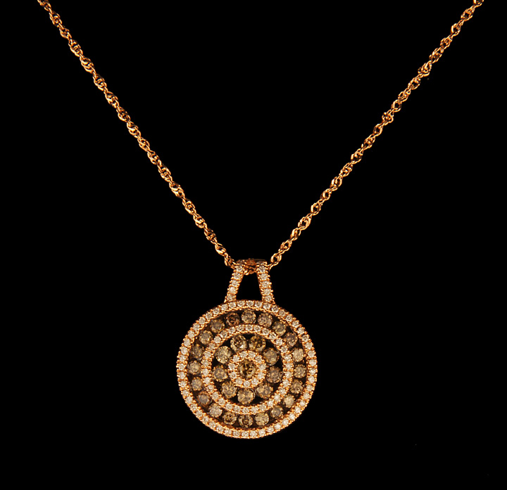 Round Diamond Pendant with Chocolate and White Diamonds 1.0 ctw 14K Rose Gold – Stock# 6954