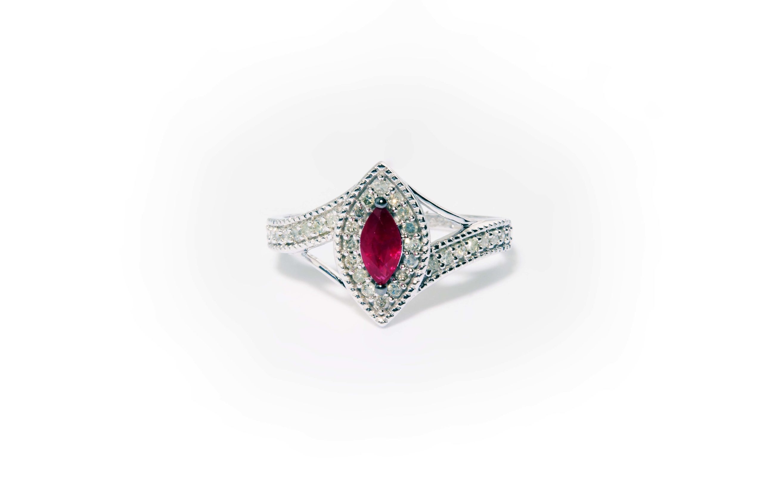 Be the first to review “Ruby and Diamond (0.22ctw) Ring in 14K White Gold”