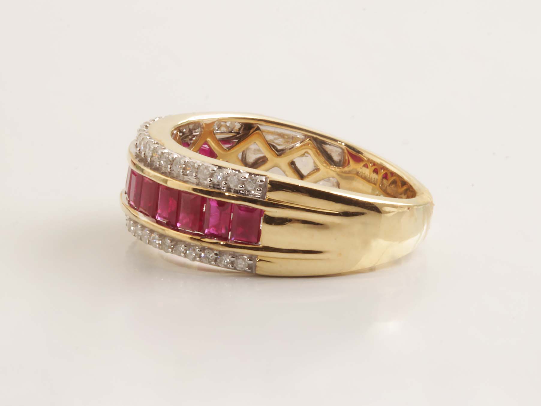 Ruby & Diamond Ring Band 14KYG #11767, 1.10CT 0.25TDW