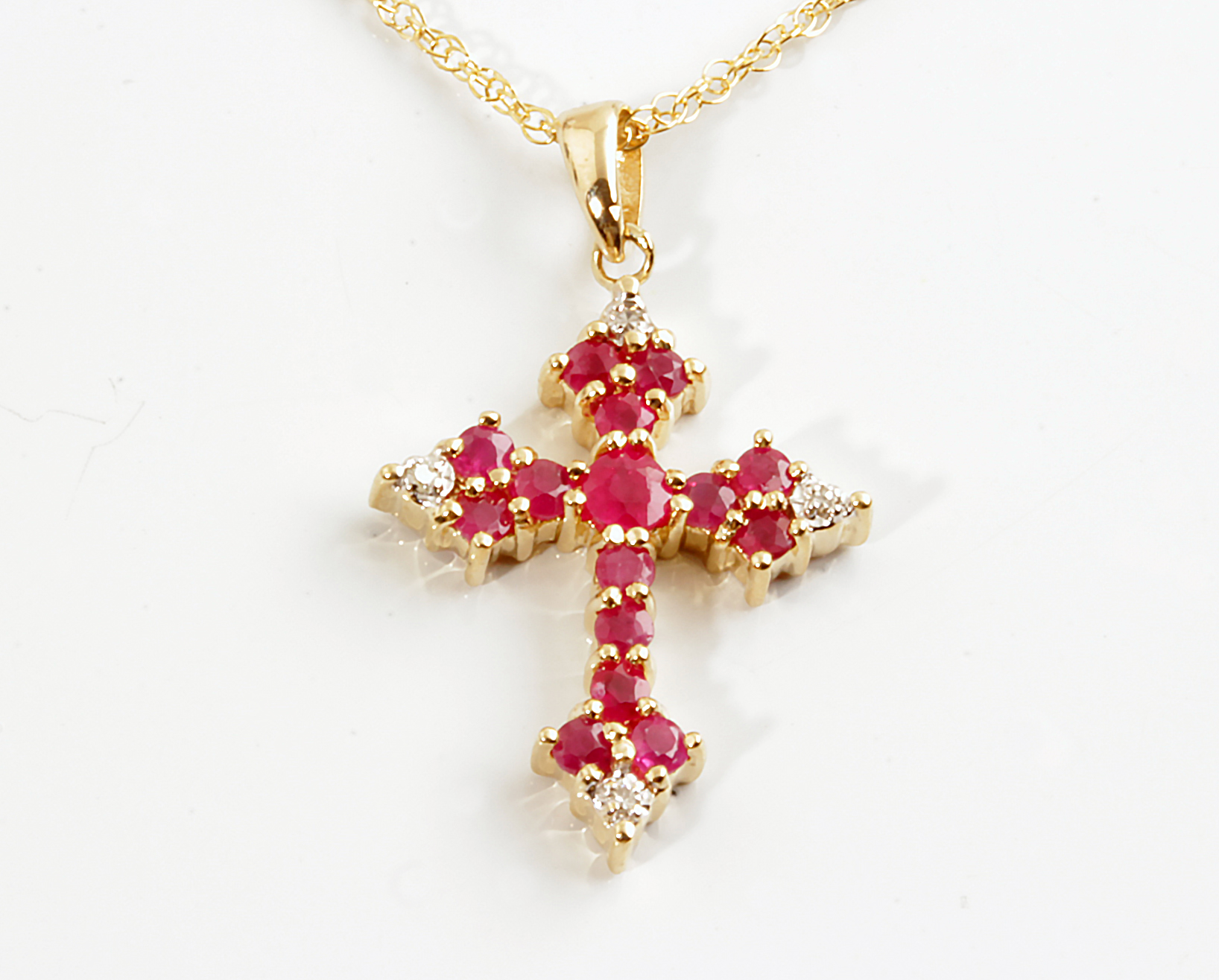 Ruby & Diamond Cross Pendant 14K YG #230-00037