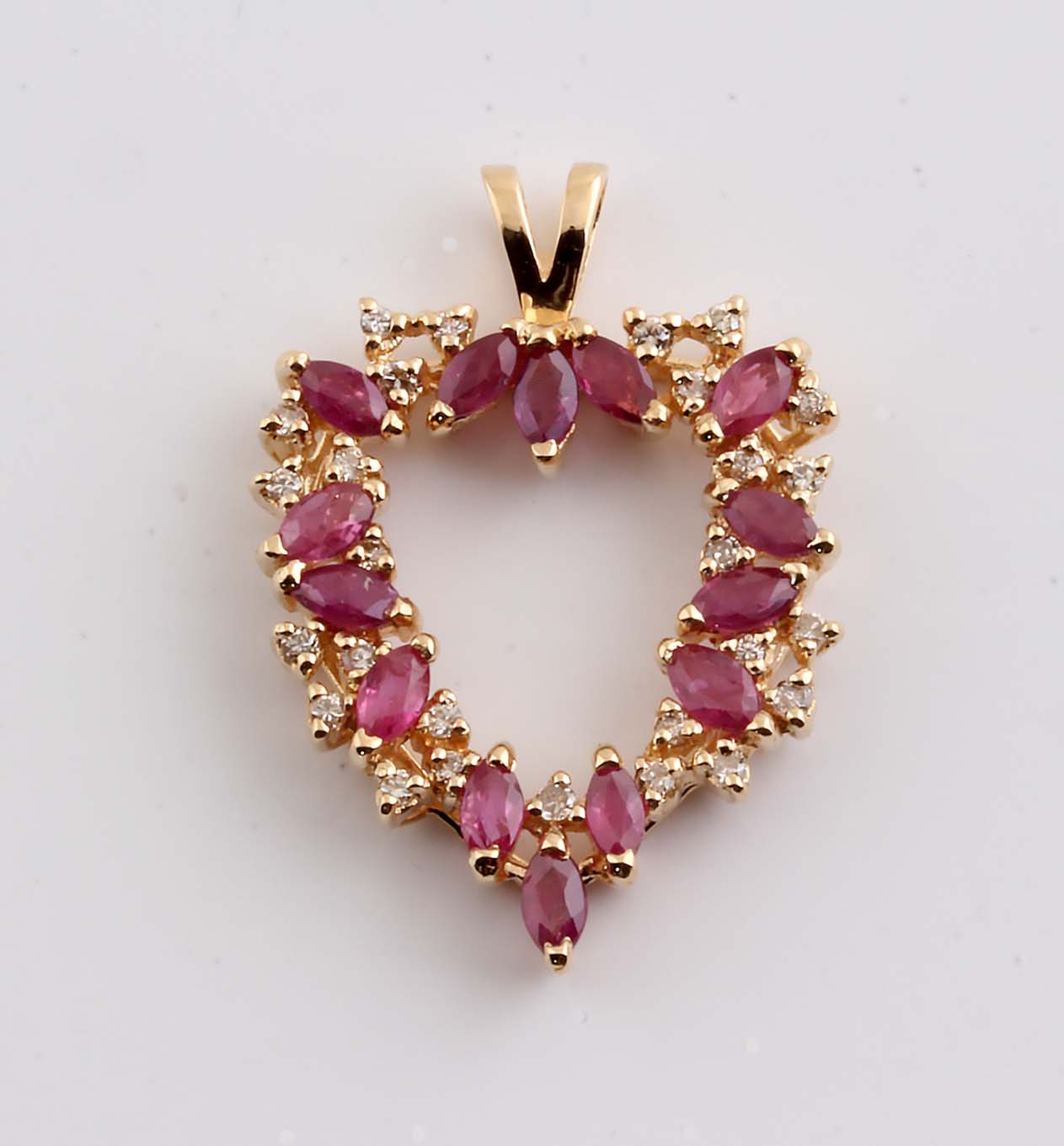 Ruby & Diamond Heart 1.0Ct Ruby .25 TDW 3.8G #10299 21 x 30 MM