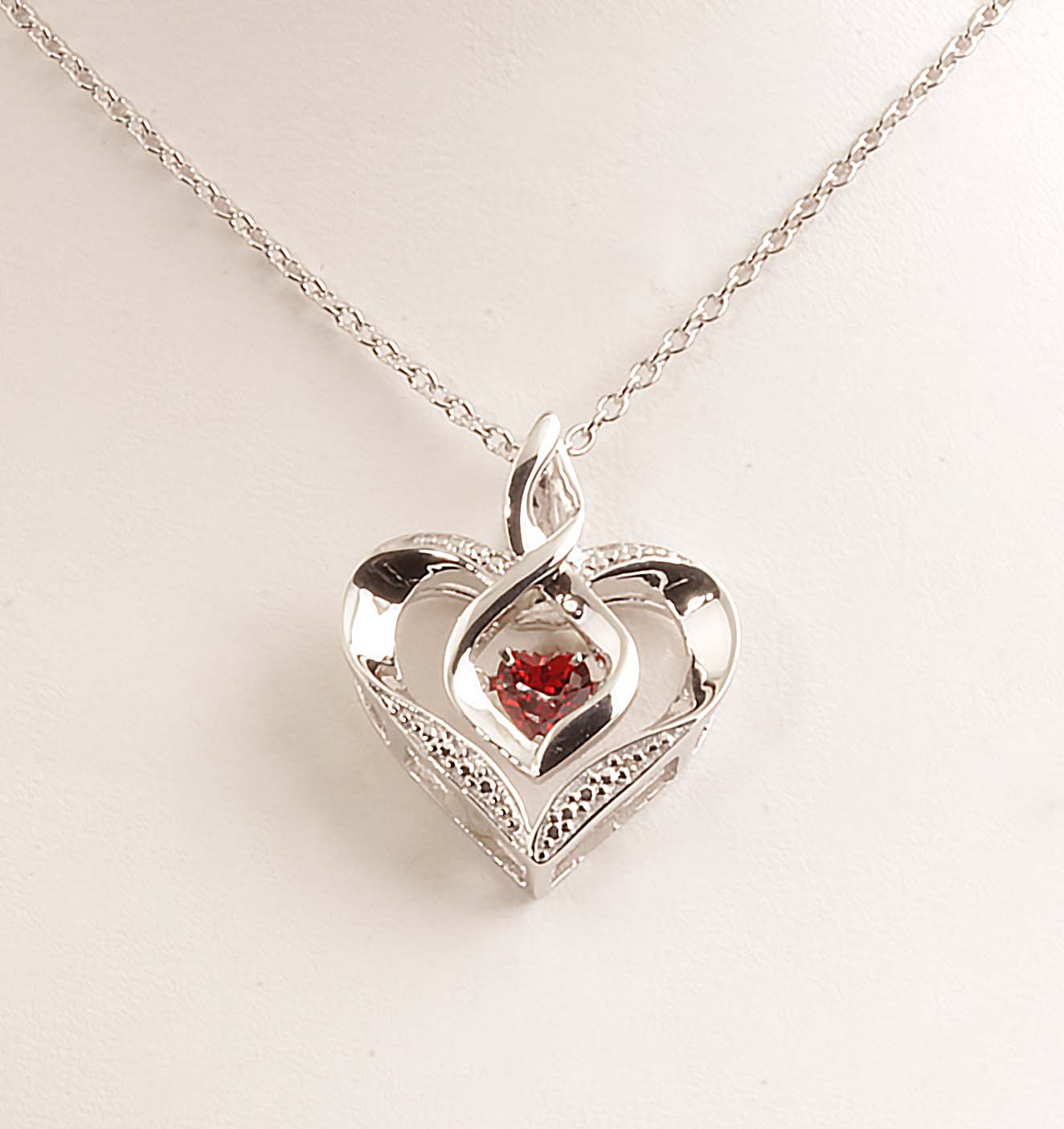 “Rythm of Love” Dancing Heart Cyn Garnet & Diamond Necklace Sterling Silver 1/4CTW.004TDW #640-00040