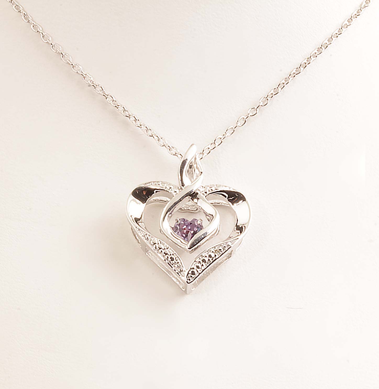“Rythm of Love” Dancing Heart Necklace Cyn Alexandrite & Diamond #640-00103 Sterling Silver 1/4GTW .004 TDW