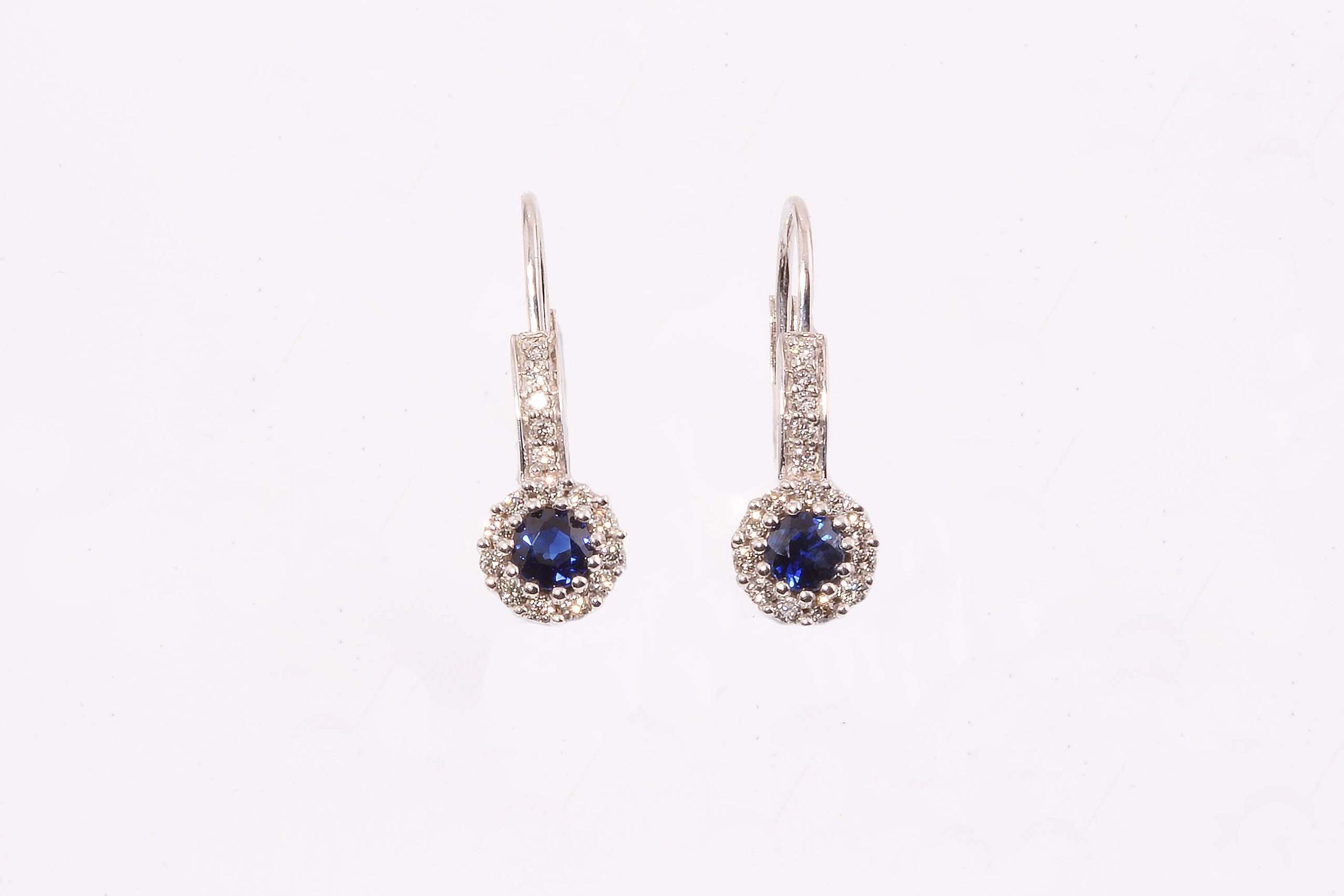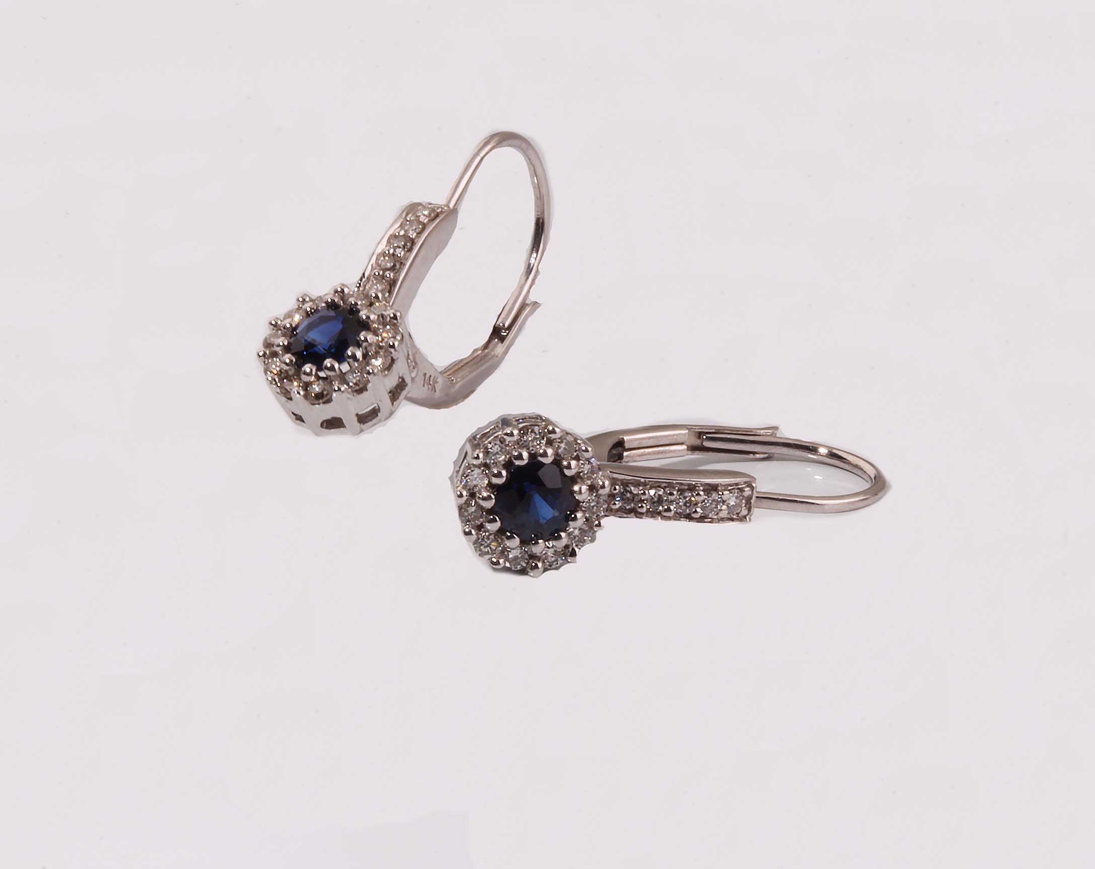 Sapphire & Diamond Leverback Drop Cluster Earrings .22TDW 3.5MM Sap in 14KWG #10895