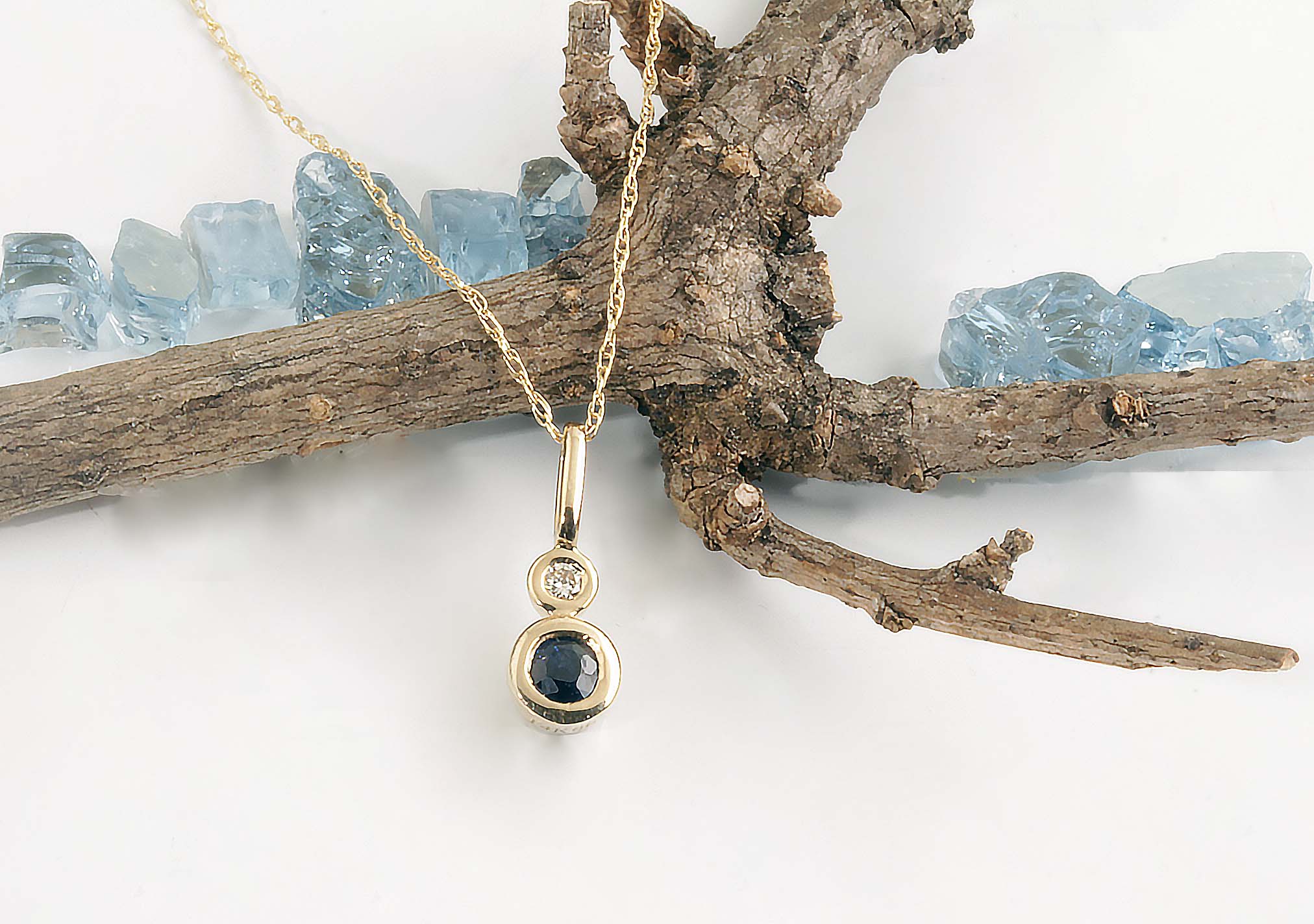 Sapphire Diamond 14KYG #11670 18″ Chain .03TDW .17SW