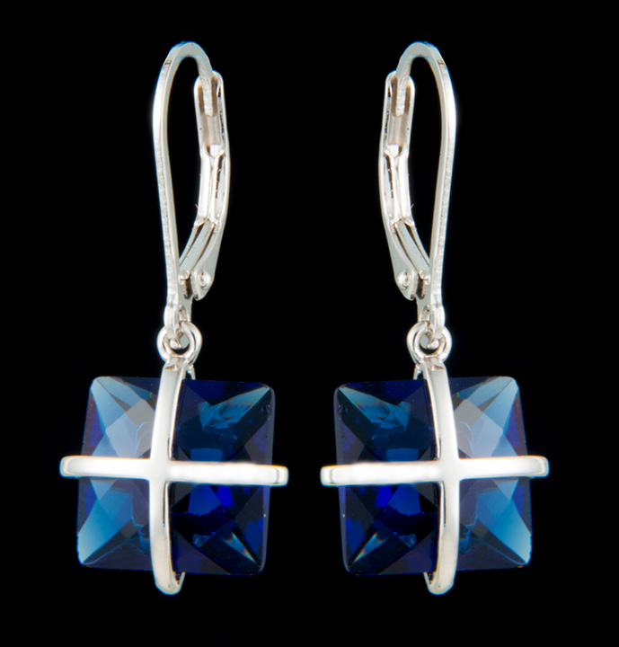 Sapphire Square Drop Earrings with CZ’s in Sterling Silver Stock# 8246