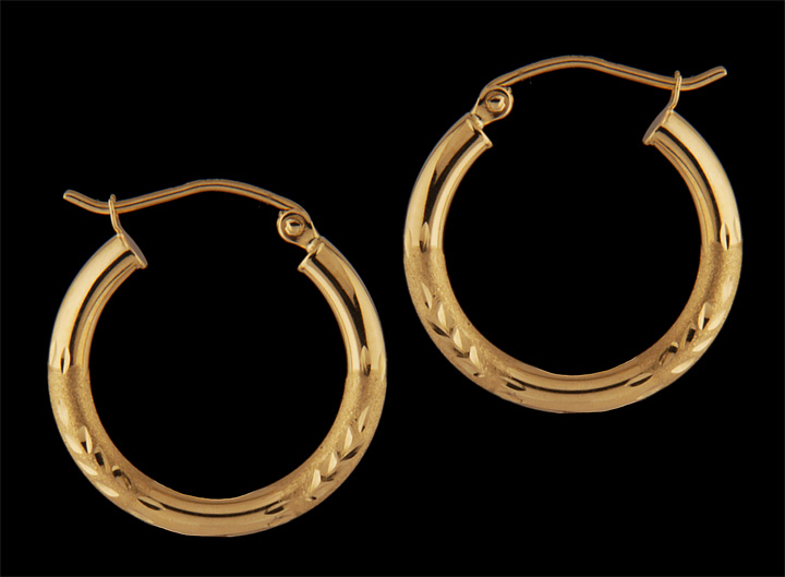 Satin and Diamond Cut Hoops 14K Yellow Gold – Stock# 7095