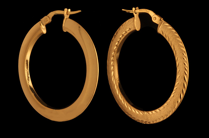 Satin and Polished Diamond Cut Hoop Earrings 14K Yellow Gold – Stock# 7910