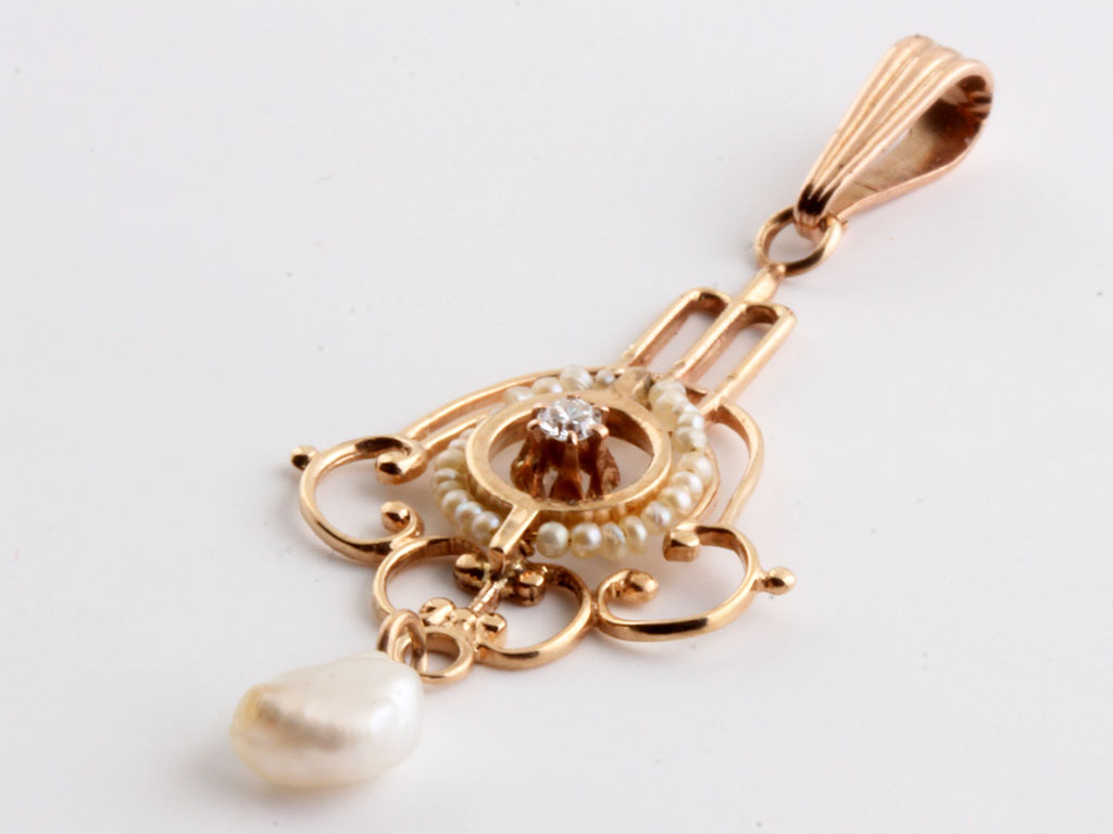 Seed Pearl Estate Pendant in 10K Yellow Gold 10081