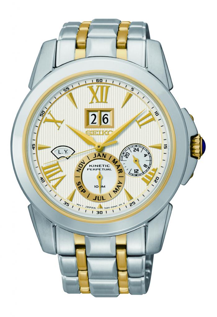 Kinetic Movement Powered by the movement of your wrist so you never have to replace a battery Power save function Perpetual Calendar Energy Depletion function Overcharge prevention function Caliber 7D48 Two tone stainless steel case & bracelet Large Date Windows at the 12 o’clock position Day, Month and Leap Year Indicator Subdials at the 4, 6 and 8 o’clock positions Scratch Resistant Sapphire Crystal Cabochon Crown Roman numeral Markers Water Resistant to 100 Meters (330 Feet) Bracelet Features a Push-Button Release Clasp 42mm Case Width not including Crown Stock# 6820 Call For Discount