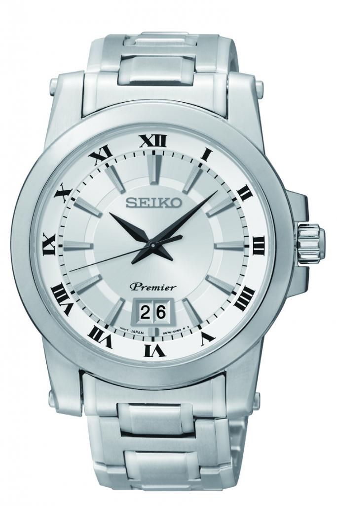 Seiko Premier collection. Stainless steel case case and bracelet Push button deployment clasp Silver tone dial with date display Scratch resistant hardlex crystal Case Diameter: 41 mm Water Resistant to 100 Meters (330 Feet) 3 Years Original U.S SEIKO Warranty Call For Discount