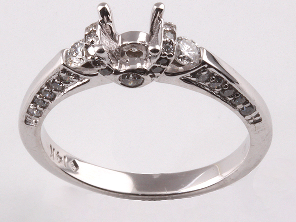 Semi-Mount with .50 Carats TDW Cathedral With Two Larger Side Stones