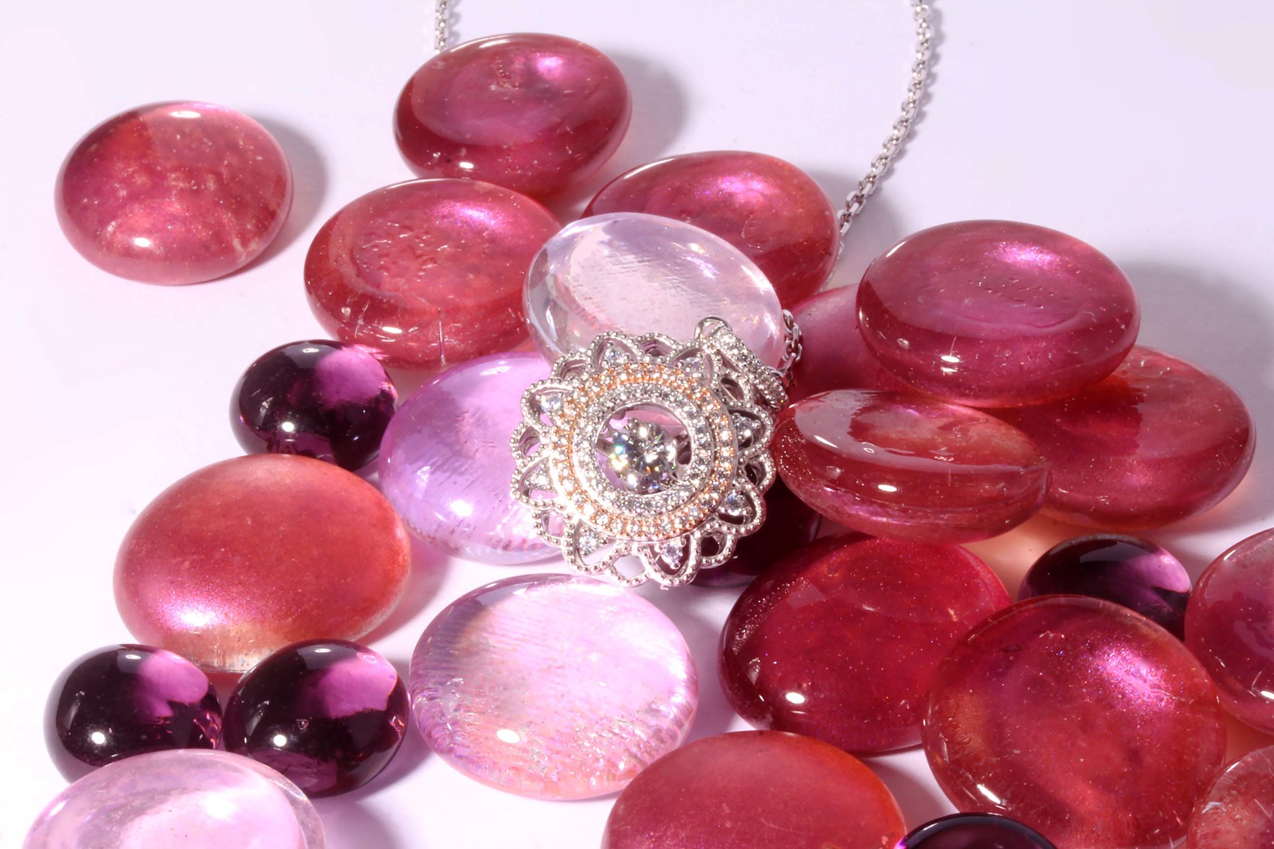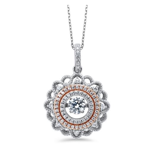 Silver and Rose Gold Plate Pendant Necklace Studded with CZ Gemstones -Stock# 9640