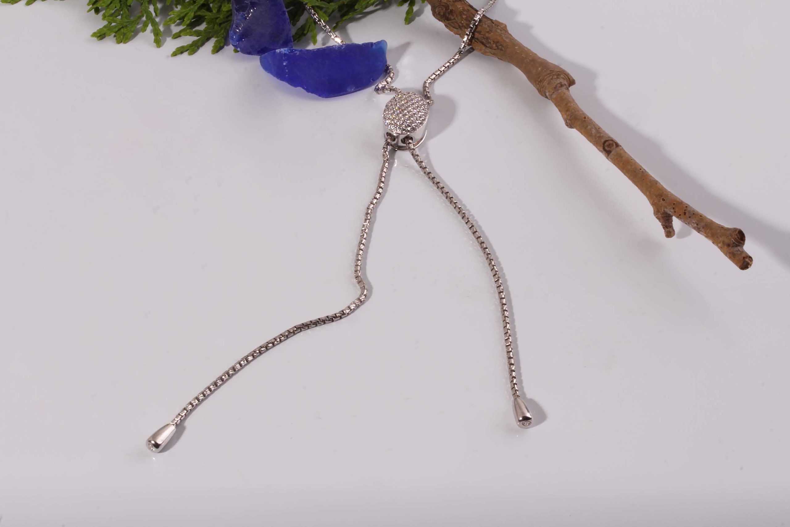 Silver Oval Crystal Bolo Necklace in Sterling Silver #640-00124