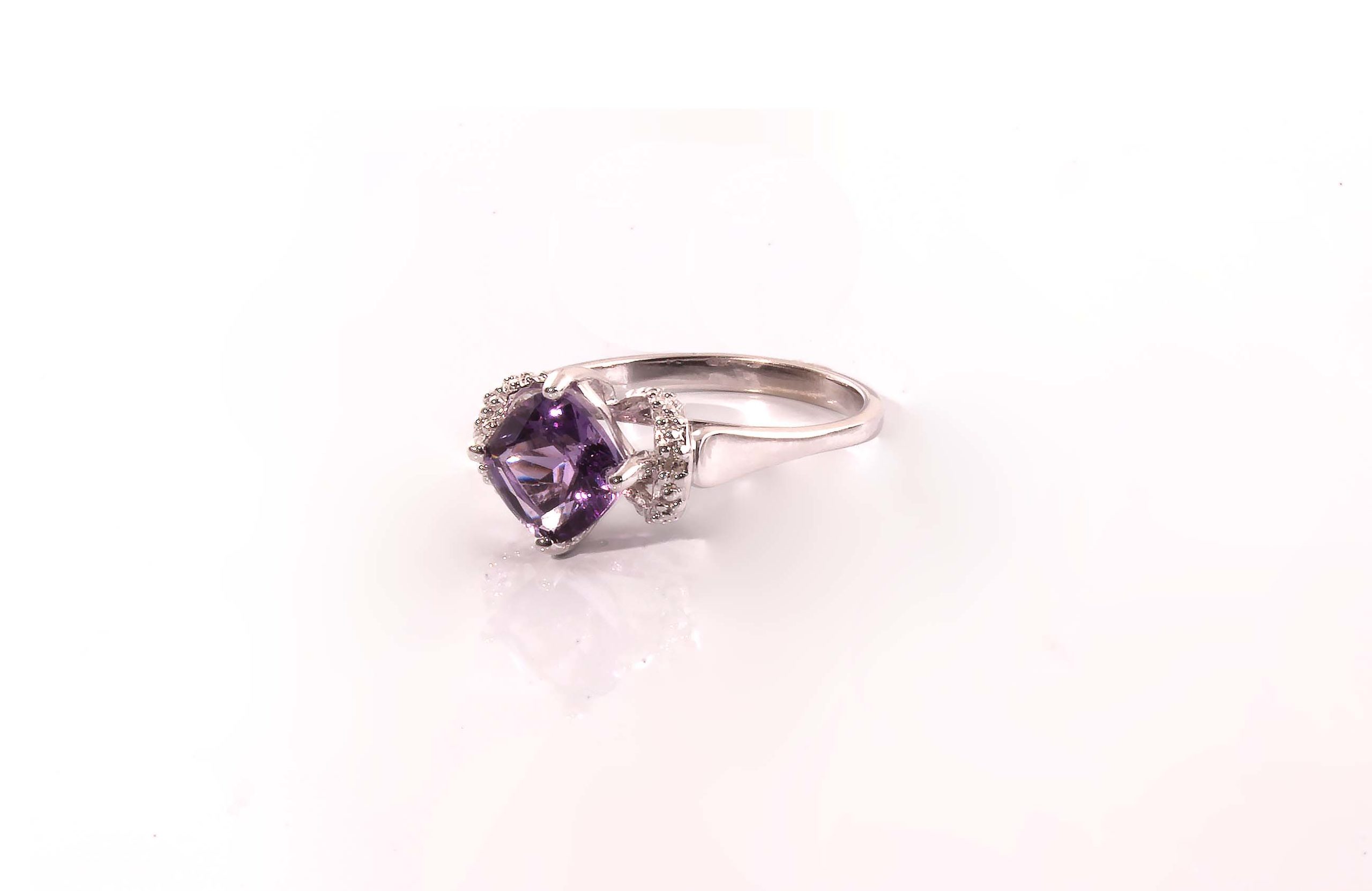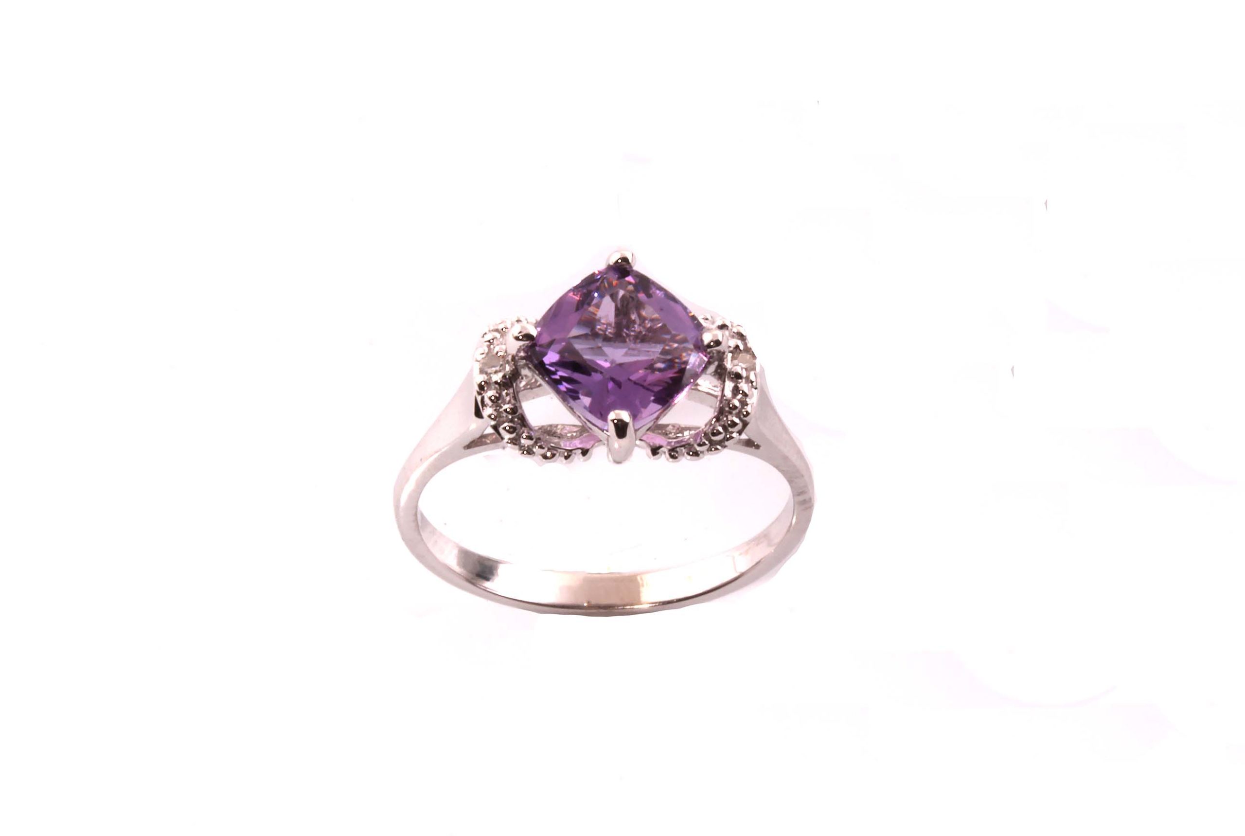 10K White Gold 7mm Cushion Cut Amethyst & Diamond Ring – #6601