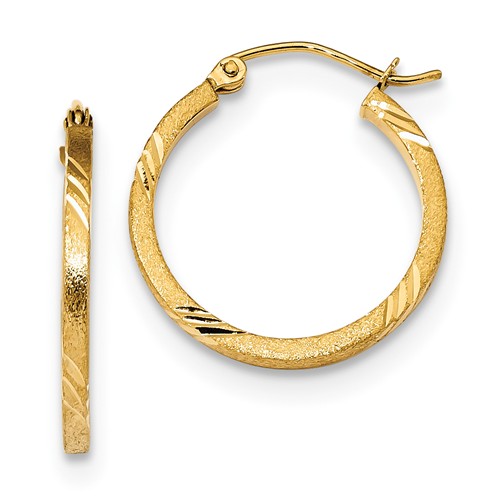 Square Tube DC and Satin 14K Yellow Gold 20MM Hoop Earrings 10207