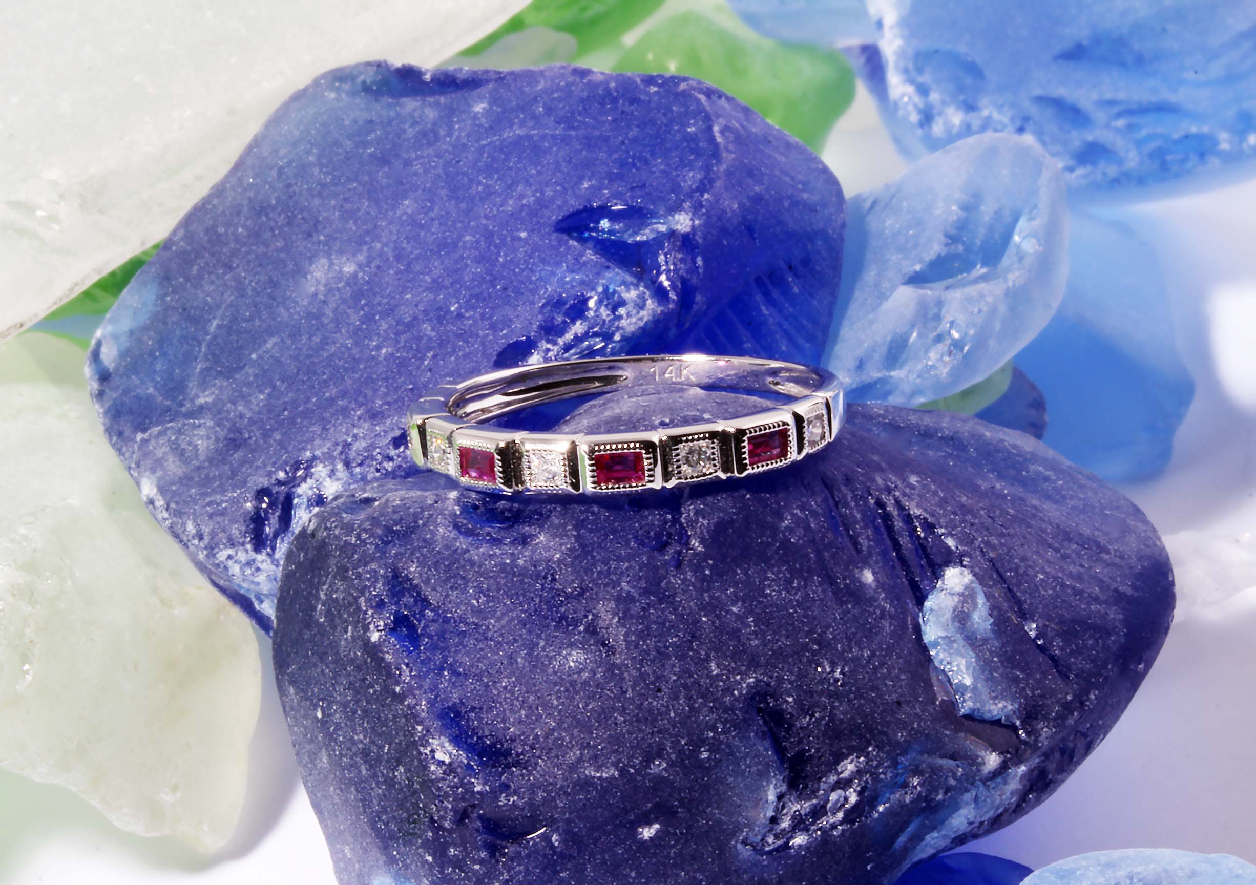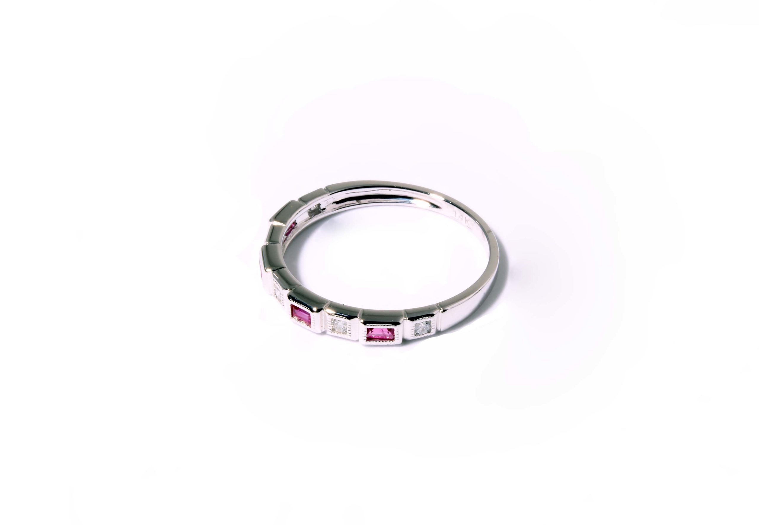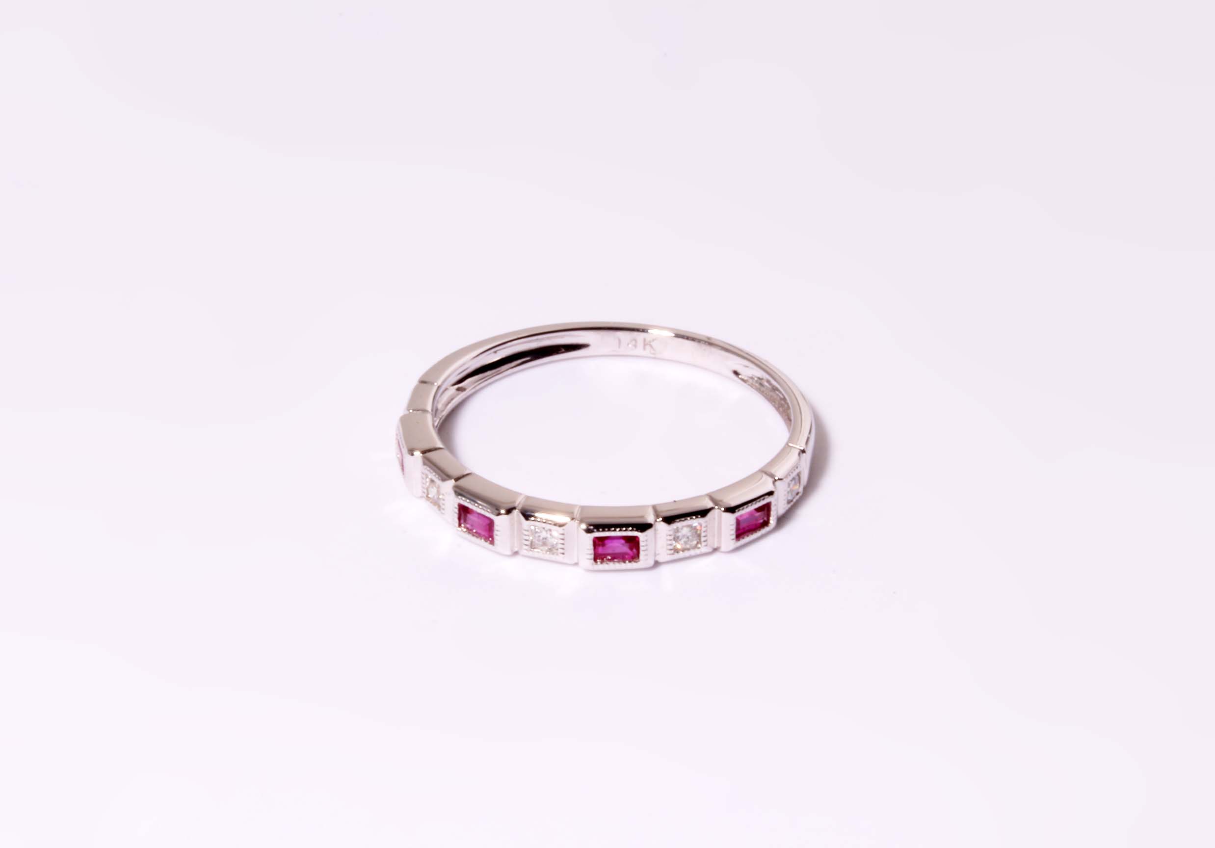 Stackable 14K WG Pink Sapphire Square Settings Ring -Stock# 130-00018