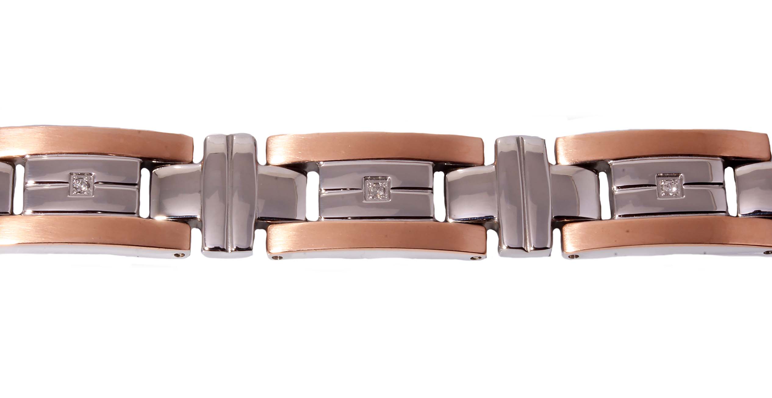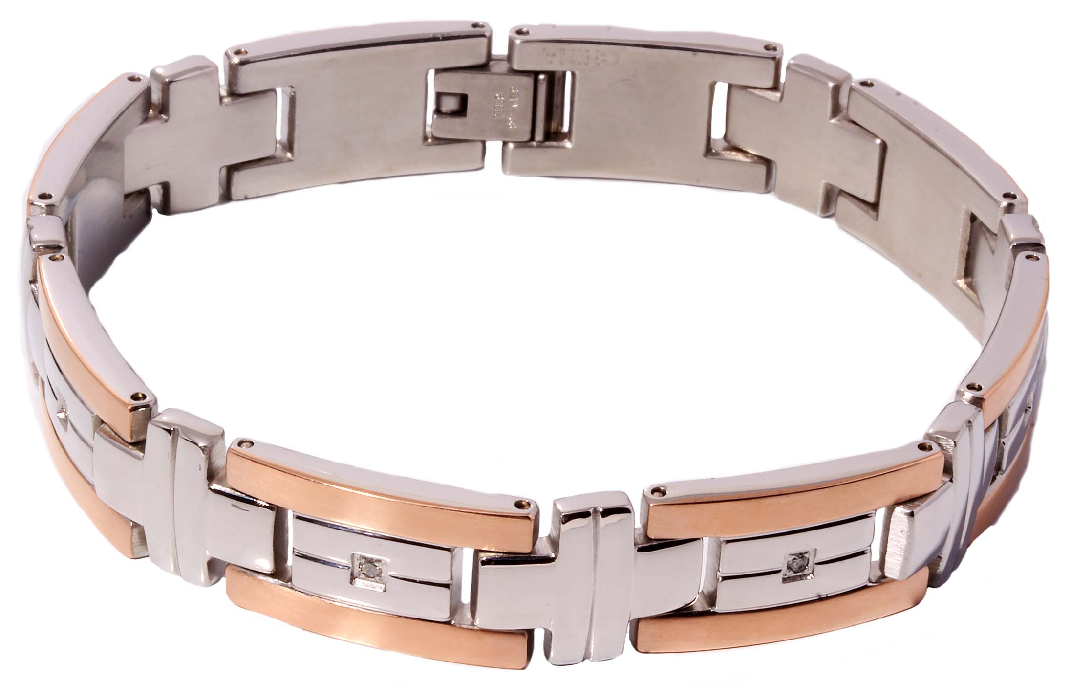 Stainless Steel and Rose Gold Plated Bracelet with .10ct Diamond -Stock#10818