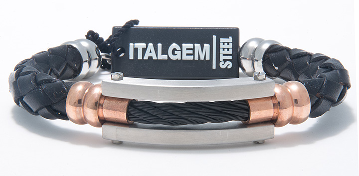 Stainless Steel Rose Black Cable Leather Bracelet – Stock# 8167