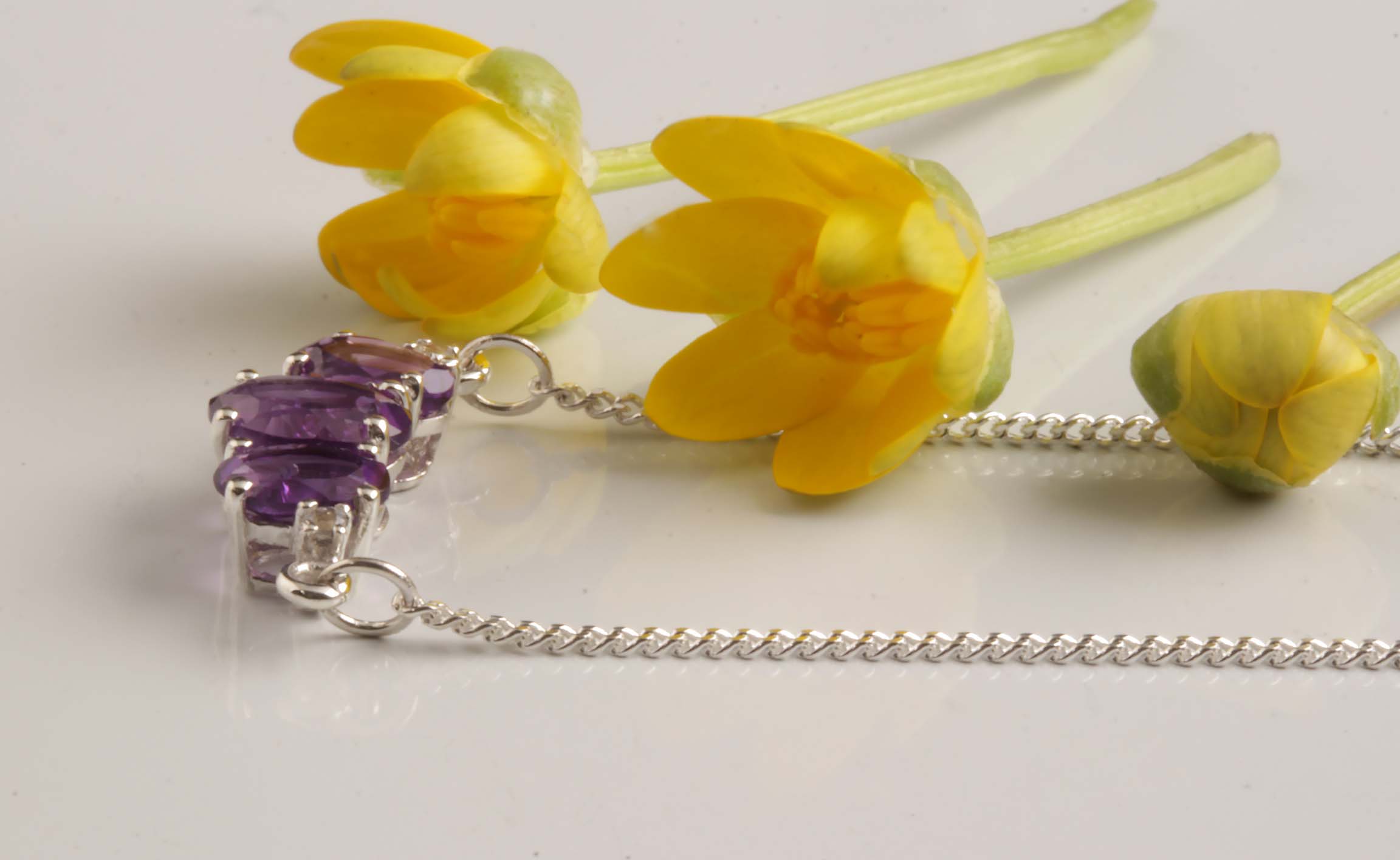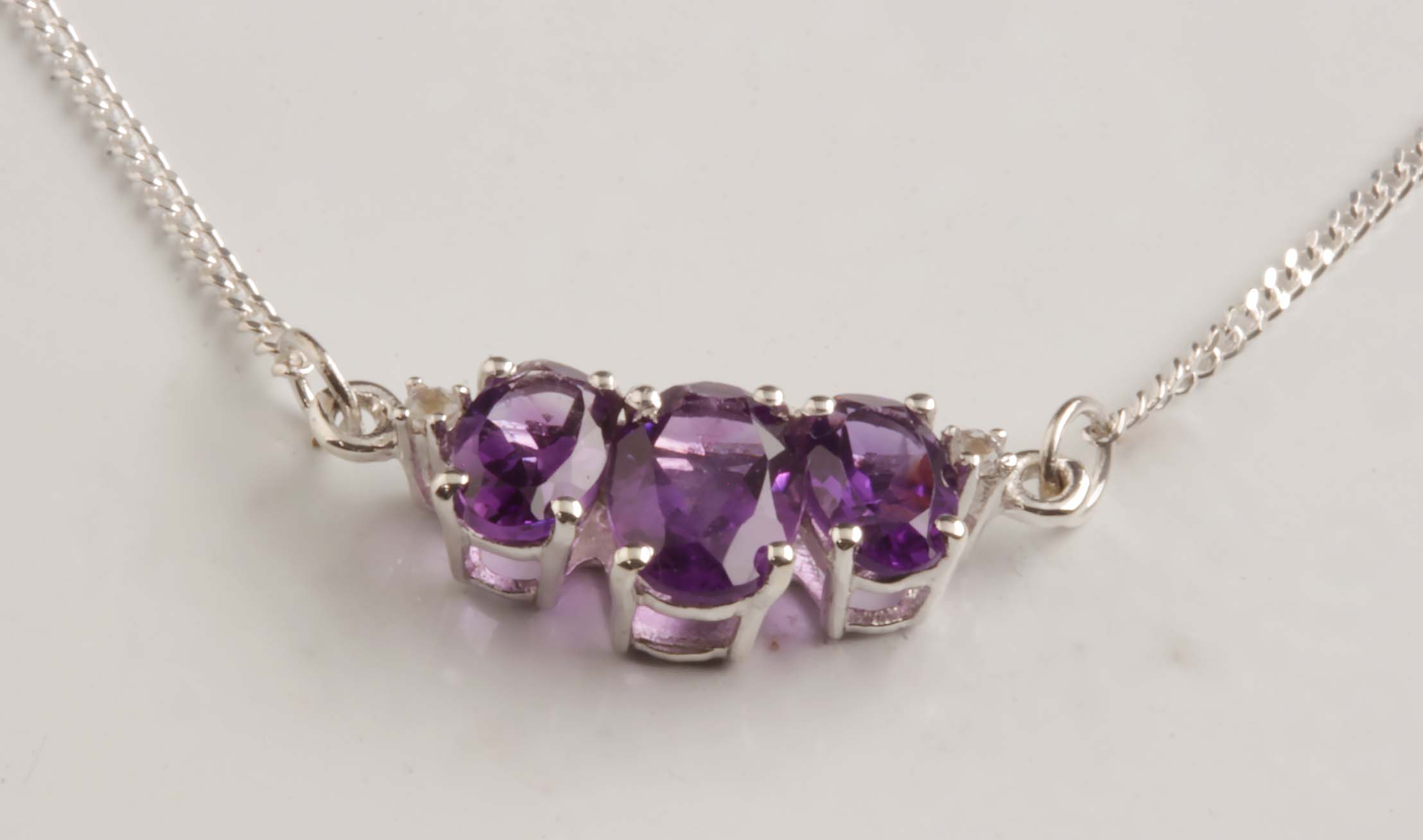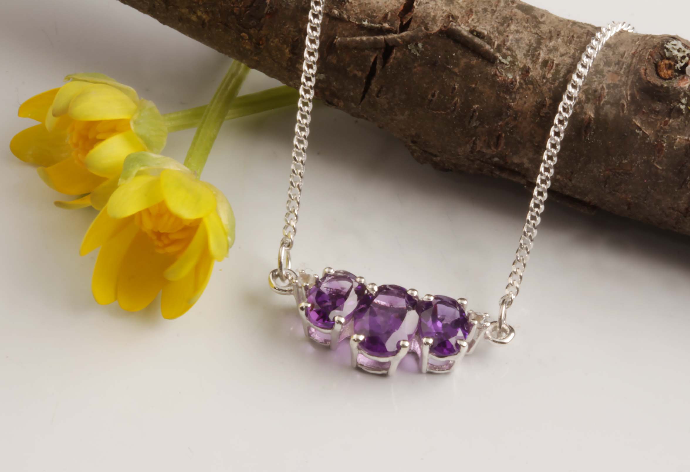 Sterling Silver 3 Oval Amethyst Necklace #12150