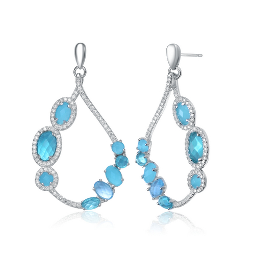 Sterling Silver Blue and White Cubic Zirconia Accent Dangle Earrings. #621-00028