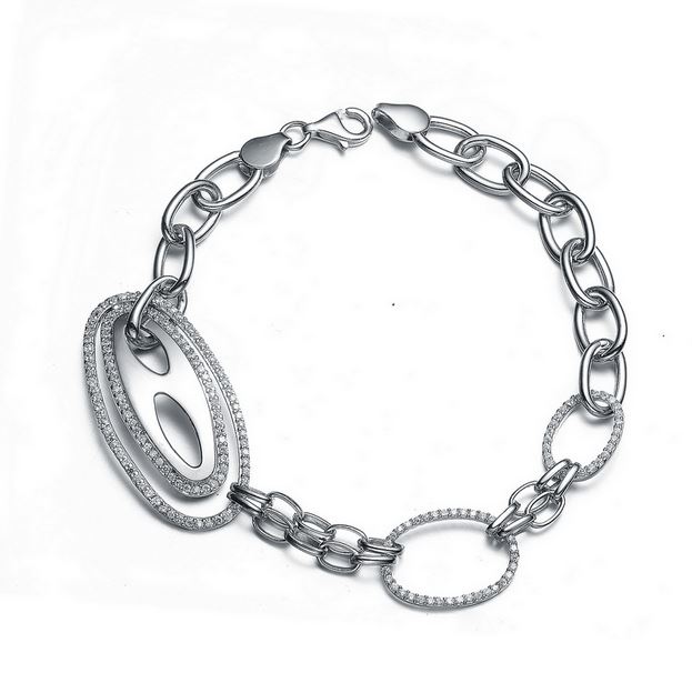 Sterling Silver Double Oval Micro-Pave Bracelet – Stock# 6918