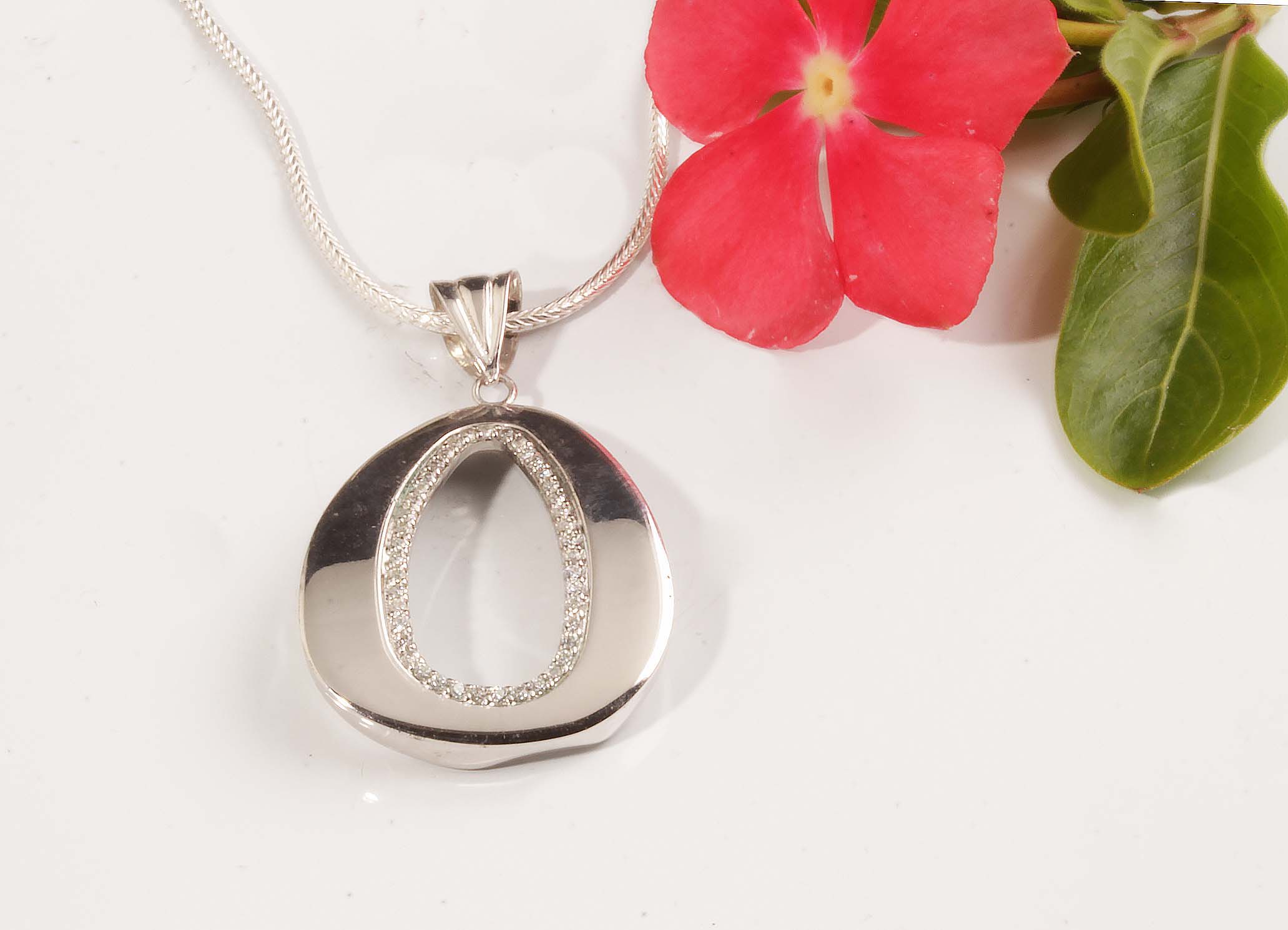Sterling Silver Pear Shape CZ Medalion on 20 Inch Foxtail #600-00051