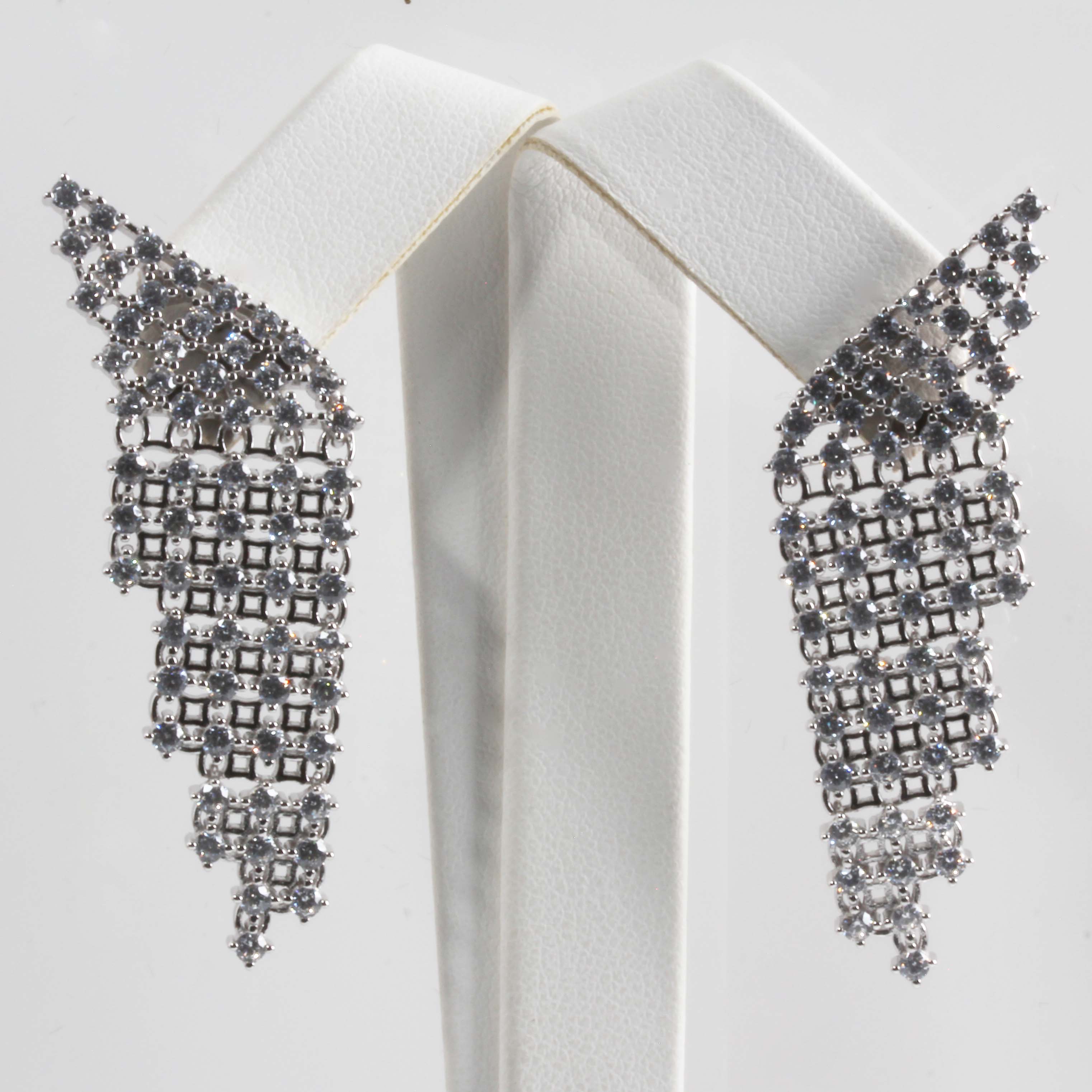 Sterling Silver Rhodium Plated Cascade Style Cubic Zirconia Earrings
