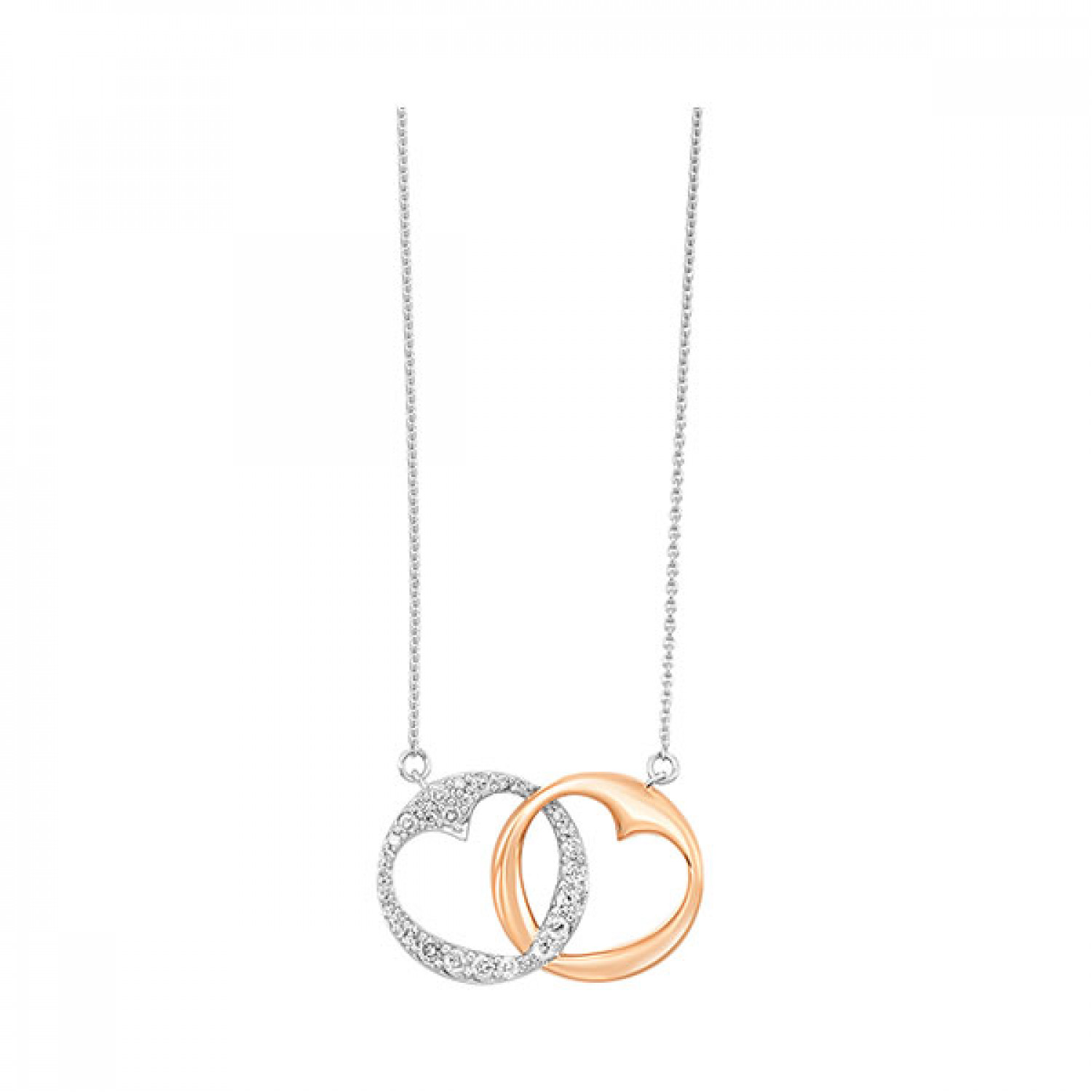 Sterling Silver & Rose Gold Diamond Connecting Circle Heart Pendant #12133