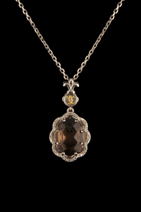 Sterling Silver Smokey Quartz Pendant with 18K Yellow Gold Fleur Di Lis Accent – Stock# 6346