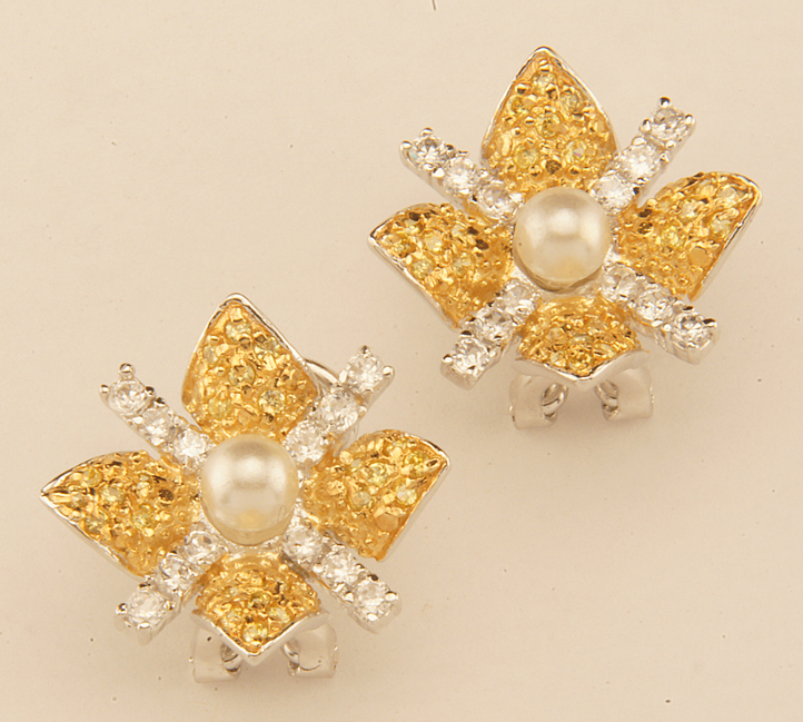 Sterling Silver Yellow and White CZ Earrngs with Pearls – Stock# 6929