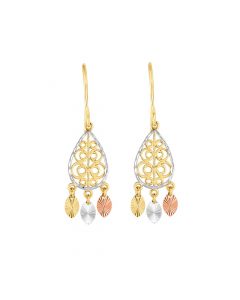 Tear Drop Dangle Filigree Fishhook 14K Tri Color Gold Earrings 10239