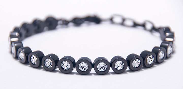 Tennis Bracelet – White Crystals Set Within a Black Stainless Steel Bezel – Stock# 8179