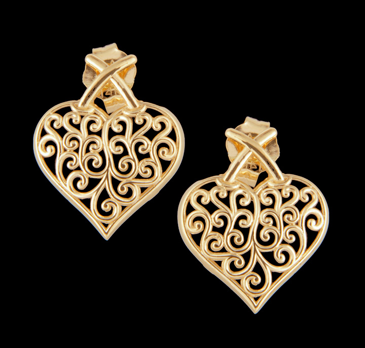Textured Heart Filigree Earrings in 14K Yellow Gold – Stock# 8411