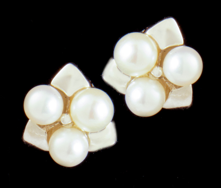 Three pearl post earrings in sterling silver – Stock# 7687