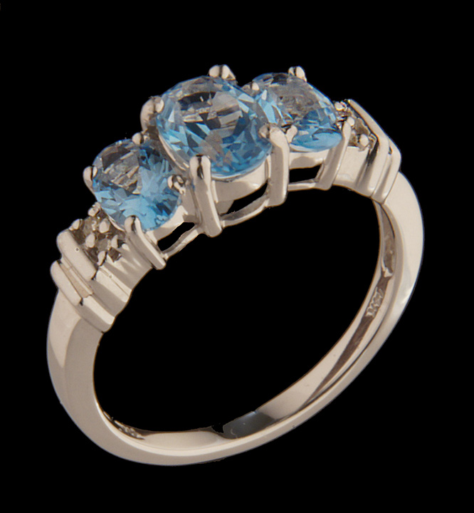 Three Stone Blue Topaz and Diamond Ring 14K White Gold – Stock# 7195