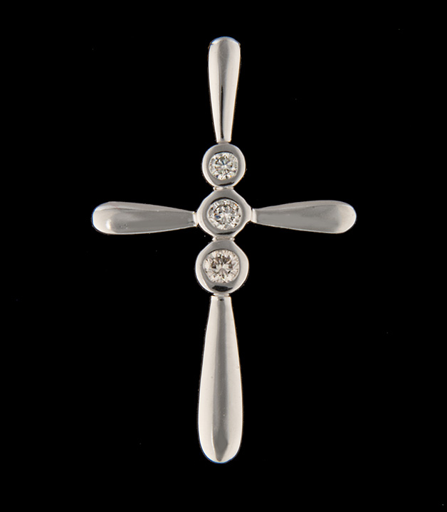 Three Stone Diamond (0.09 ctw) Cross in 14K White Gold – Stock#7619