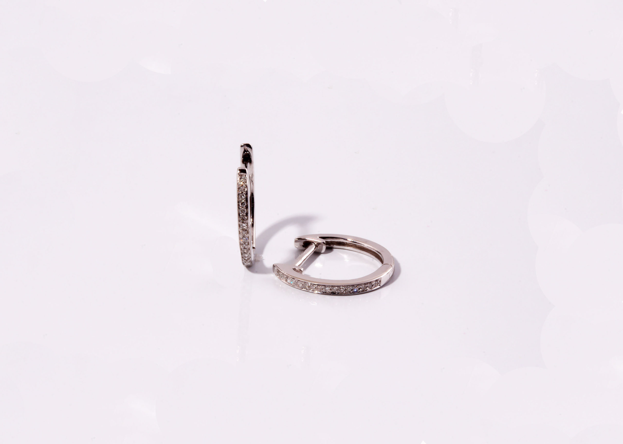 Tiny 14KWG 13MM .08TDW Huggie Hoops