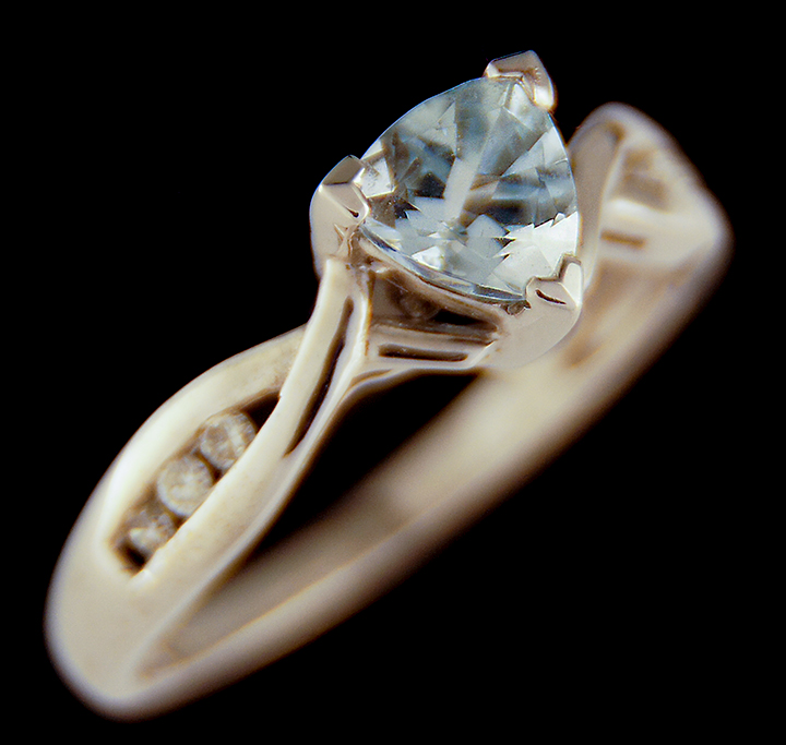 Trillion Aquamarine and Diamond (0.10ctw) Ring in 10K White Gold – Stock# 7031