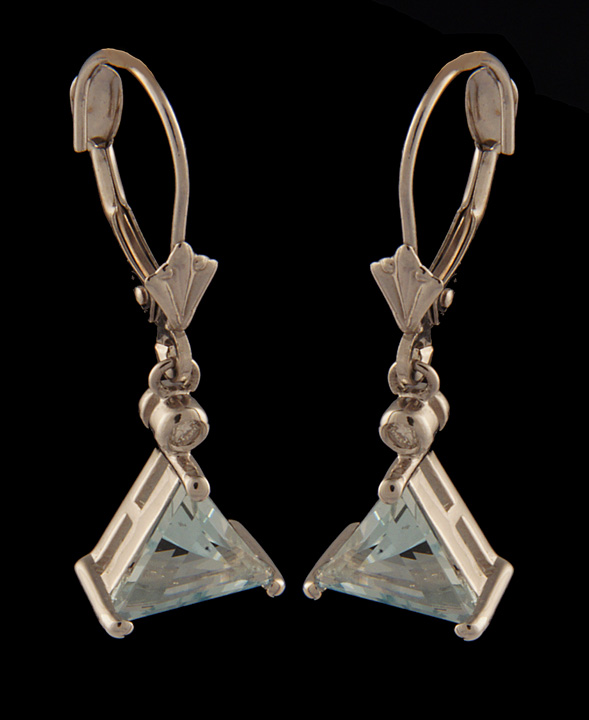 Trillion Aquamarine Earrings in 14K White Gold – Stock# 4769