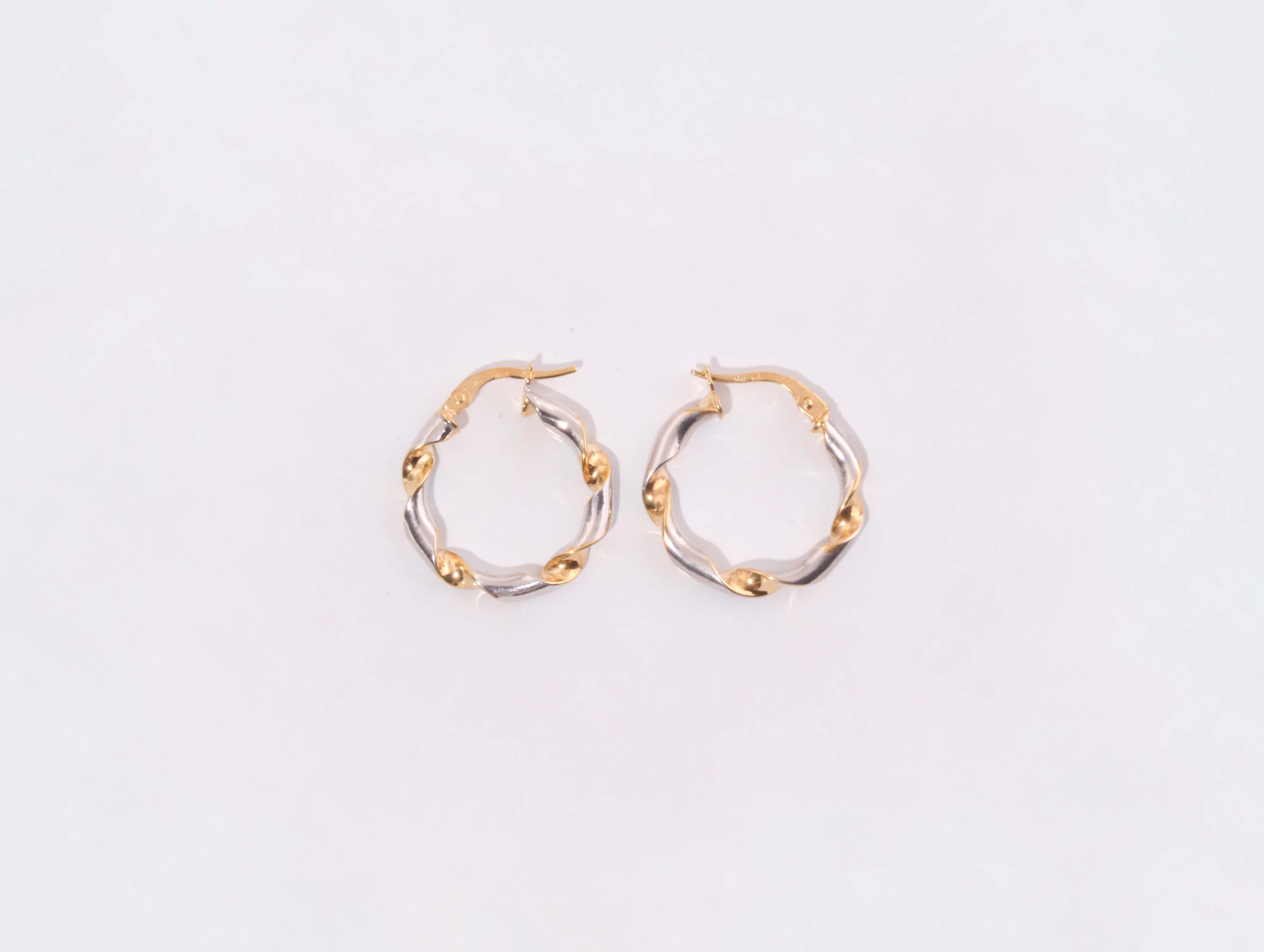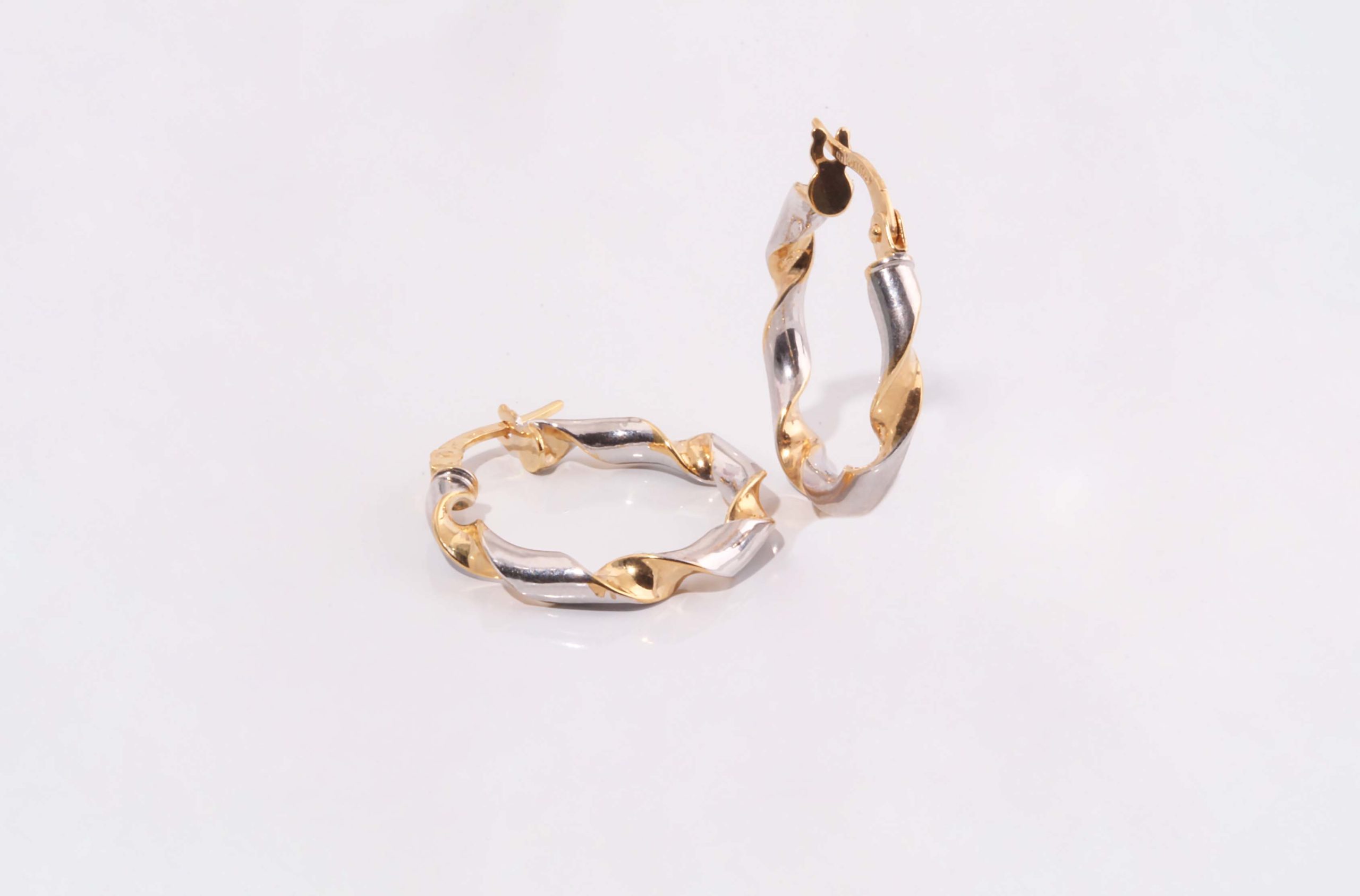 Twisted Two Tone Hoop Earrings 20 MM in 14K Yellow Gold 10240